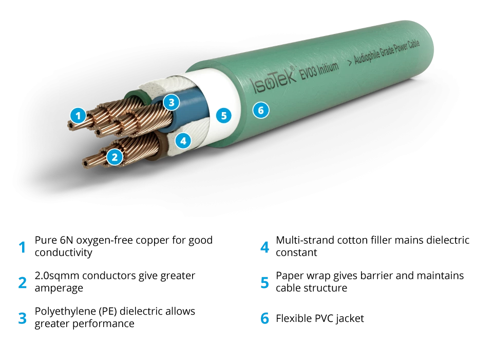 EVO3 Initium je vstupní napájecí kabel od IsoTek, navržený tak, aby nabízel vysoký výkon za velmi příznivou cenu. Initium je ideální pro nahrazení všech standardních černých plastových napájecích kabelů, které byly navrženy s důrazem na cenu, nikoliv na kvalitu.