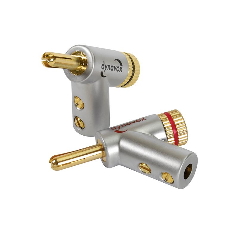 Díky banánkovým konektorům Dynavox s pružinovým zajišťovacím mechanismem je špatné připojení reproduktorových kabelů minulostí. Pružinový kolík se zezadu zašroubuje do konektoru a roztáhne jej pro bezpečné uchycení, což zaručuje trvalé a spolehlivé spojení. Lze připojit kabely o průměru až přibližně 4,5 mm, které se zajistí dvěma stavěcími šrouby.