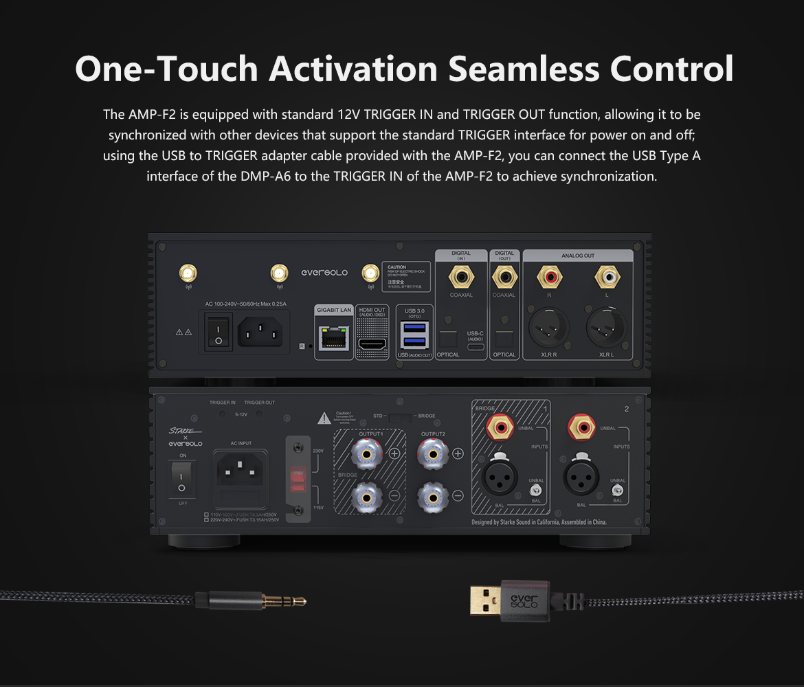 Kompatibilita: AMP - F2 je navržen pro snadné propojení s dalšími high-end produkty Eversolo, jako jsou:
