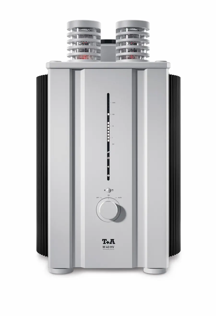 T+A M 40 HV je extrémně výkonný, hybridní monofonní koncový zesilovač, kombinující analogové elektronkové přirozenosti s vysokým výkonem tranzistorových obvodů. Díky dvěma provozním režimům (High Power / High Current), možnosti bi-ampingu a robustní pasivní konstrukci je vhodný pro velmi náročné systémy a reproduktory s nízkou citlivostí. Hodnocení se shodují na excelentní hudebnosti, detailnosti a dynamice.