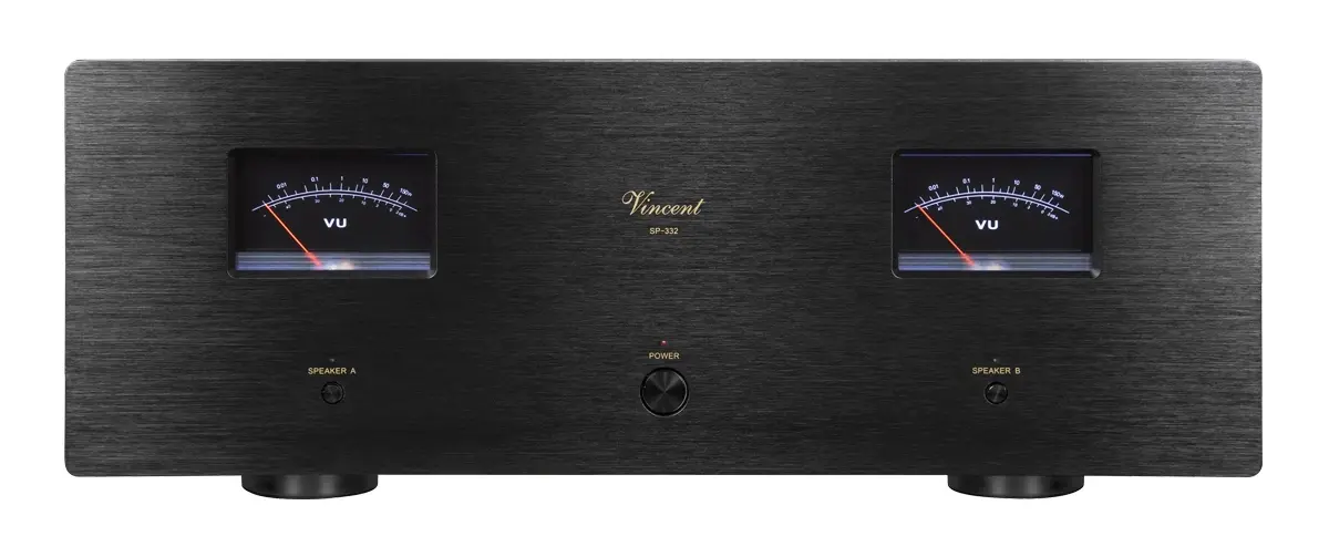 Vincent SP-332je výkonný stereo koncový zesilovač, který spojuje muzikálnost lampového vstupního stupně s jistotou a kontrolou tranzistorového výkonu. Hybridní konstrukce staví na osvědčené filozofii značky Vincent a přináší zvuk s velmi dobrou dynamikou, pevnými basy, přirozeným podáním středního pásma a příjemně kultivovaným projevem i při delším poslechu. Výrobce uvádí výkon 2 × 150 W / 8 Ωa 2 × 250 W / 4 Ω, takže SP-332 má dostatek rezerv i pro náročnější reprosoustavy.